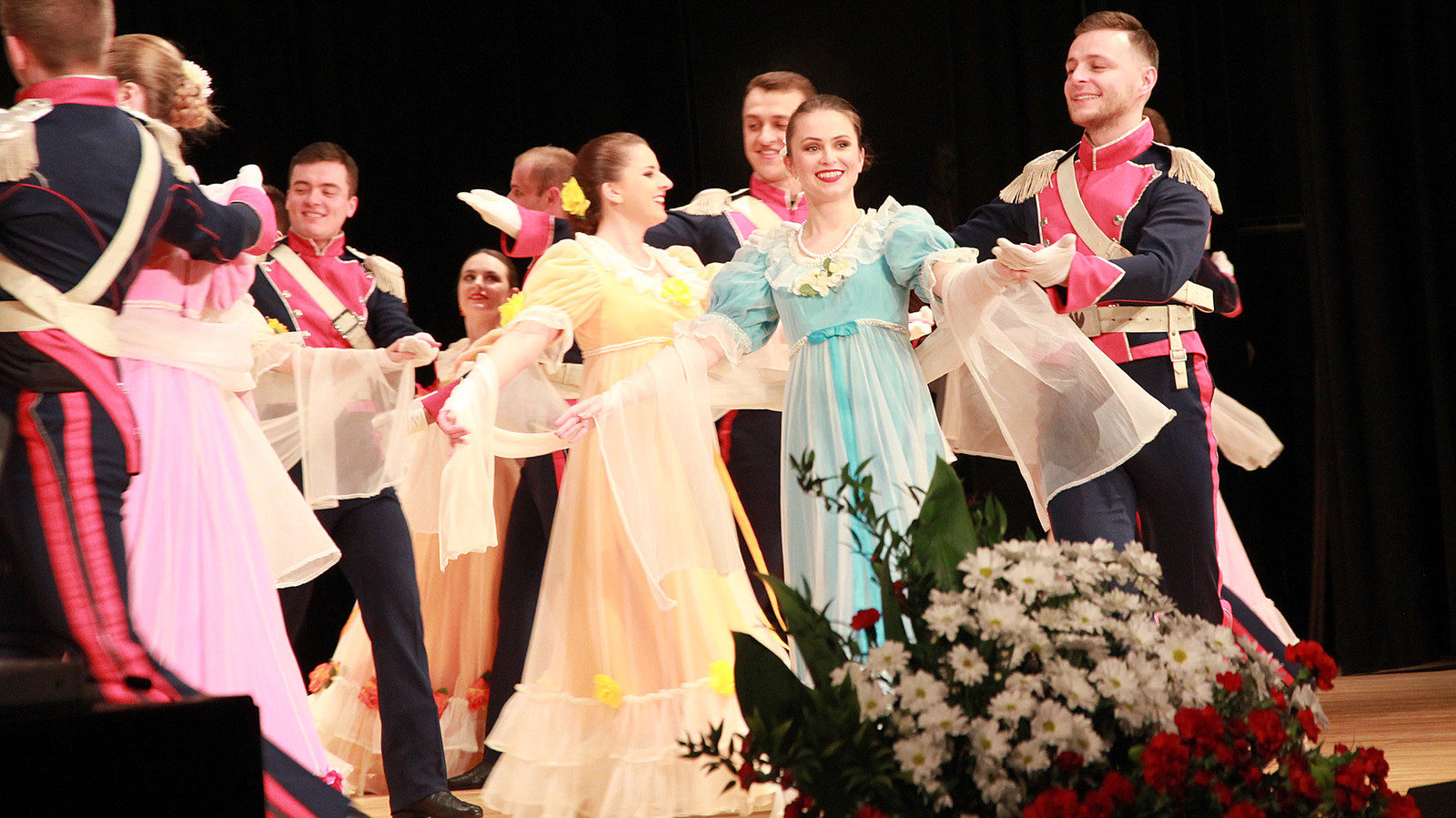 Podczas koncertu można było zobaczyć barwne tańce narodowe: poloneza i krakowiaka, zabawną polkę warszawską oraz dynamiczne tańce ludowe: sądeckie, Krakowiaków Wschodnich , przeworskie i rzeszowskie. Zespół zaśpiewał również piękne pieśni „Kochajmy się bracia mili”, „Kraj rodzinny matki mej”, „Maki” i „Olszynkę”.