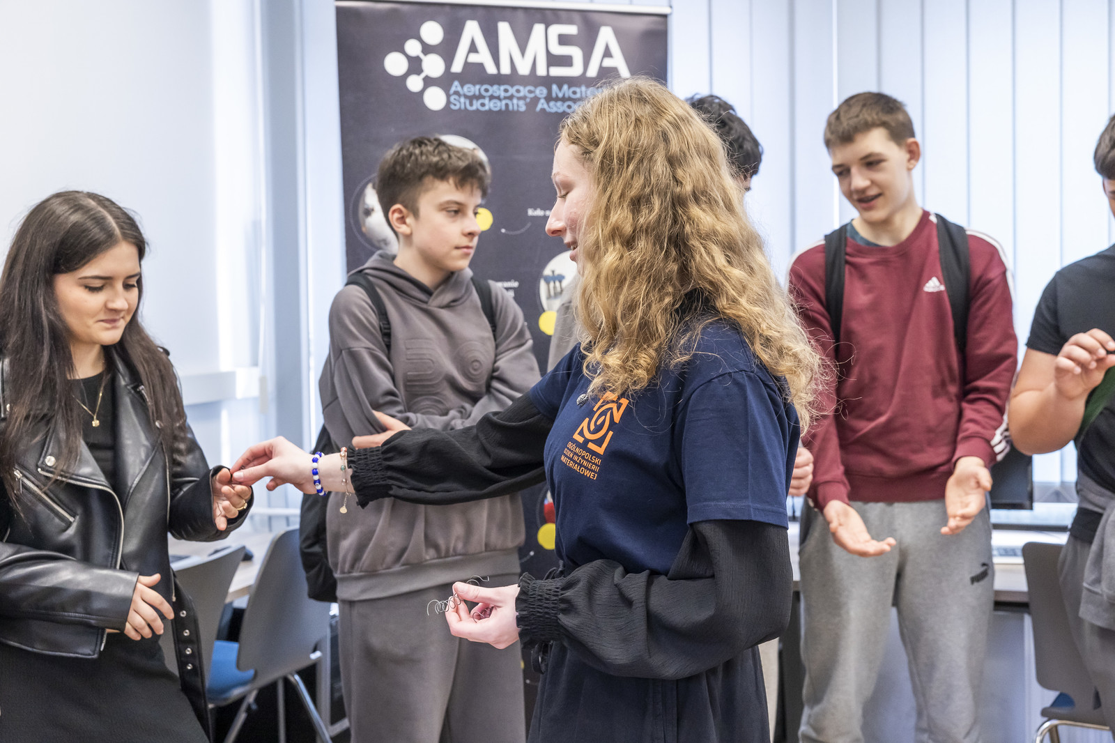 Po wykładzie młodzież udała się do Katedry Nauki o Materiałach i Laboratorium Badań Materiałów dla Przemysłu Lotniczego, gdzie wzięła udział w warsztatach nt. mikroskopii skaningowej elektronowej, natryskiwania plazmowego, fizycznego osadzania z fazy gazowej (EB-PVD), procesów elektrochemicznych oraz badań właściwości mechanicznych materiałów. Uczestnicy mogli również wysłuchać prezentacji dotyczącej działalności studenckiego koła naukowego AMSA (Aerospace Materials Students’ Association).