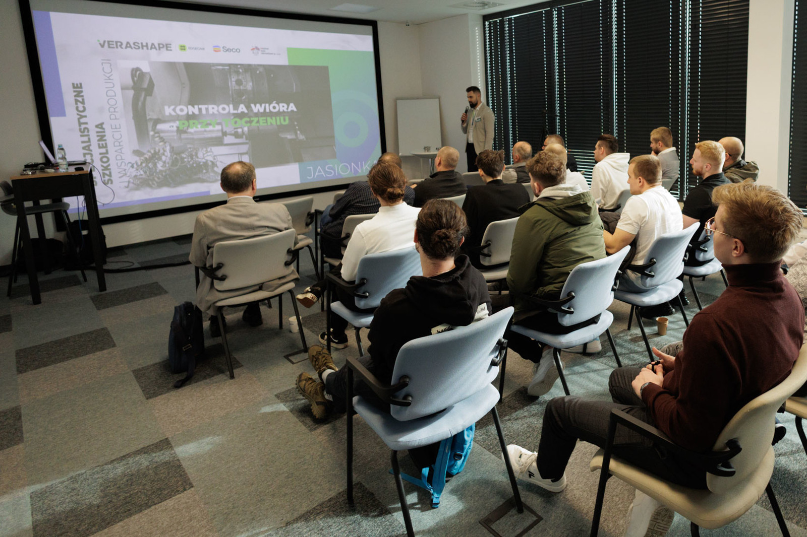 W Centrum Szkoleniowym Verashape w Tajęcinie odbyło się seminarium poświęcone kontroli wiórów przy toczeniu. Wydarzenie było zorganizowane przez firmę Verashape oraz jej partnerów – Seco Tools i Machine Tools International. Dzięki współpracy Katedry Technik Wytwarzania i Automatyzacji Wydziału Budowy Maszyn i Lotnictwa z firmą Verashape studenci mieli wyjątkową okazję, aby zdobyć praktyczną wiedzę na temat wpływu narzędzi, parametrów skrawania i strategii CAM na procesy toczenia, jak również zobaczyć innowacyjne rozwiązania technologiczne w praktyce.