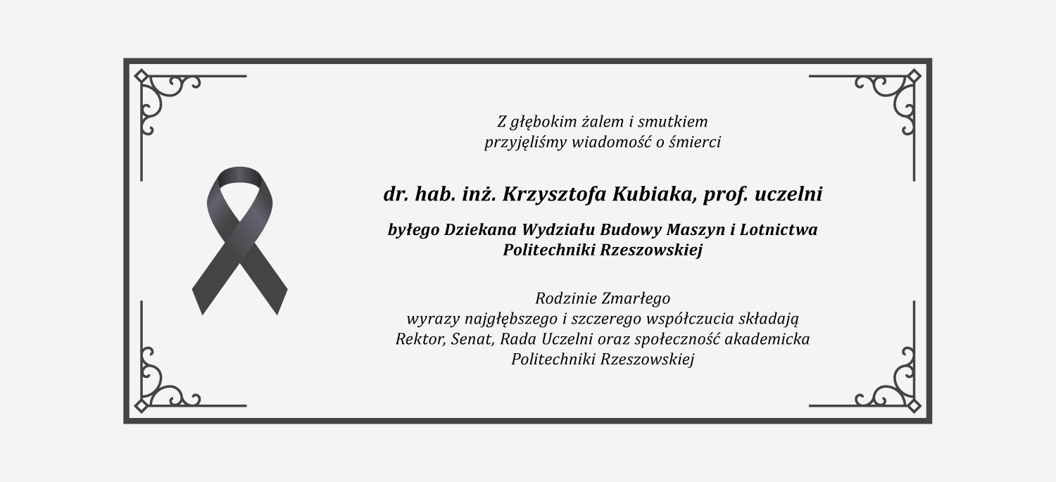 Podstrona: Zmarł dr hab. inż. Krzysztof Kubiak / POLITECHNIKA RZESZOWSKA im. Ignacego Łukasiewicza